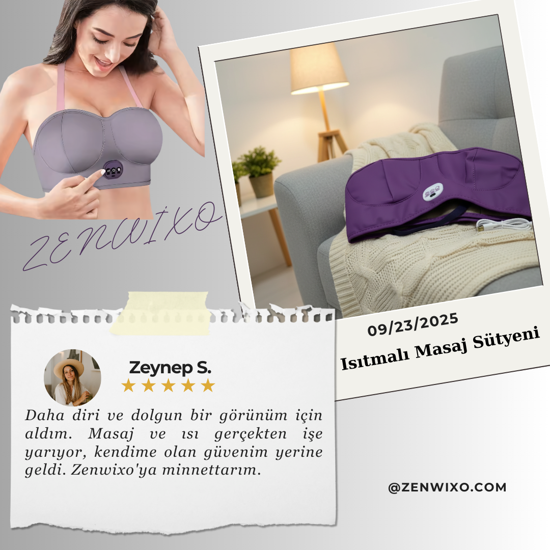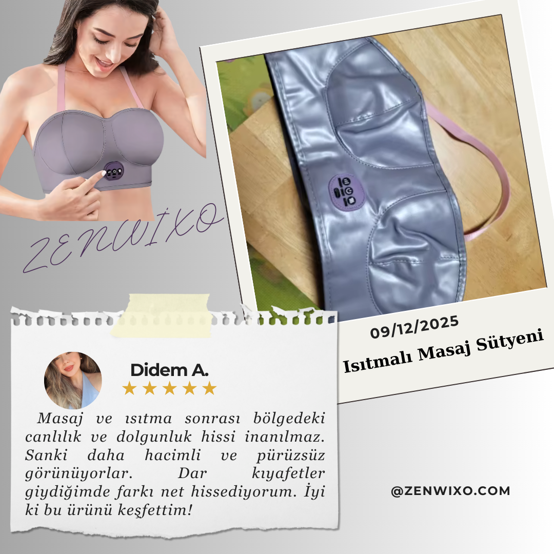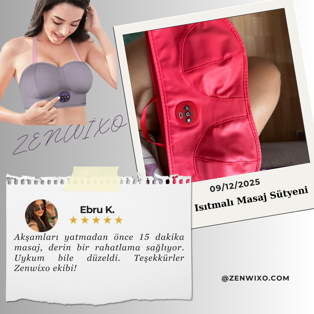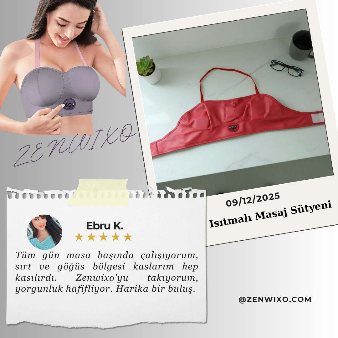 Zenwixo Masaj Sütyeni, titreşimli masaj ve sıcak kompres özelliğiyle göğüs dokunu desteklemeye yardımcı olur.